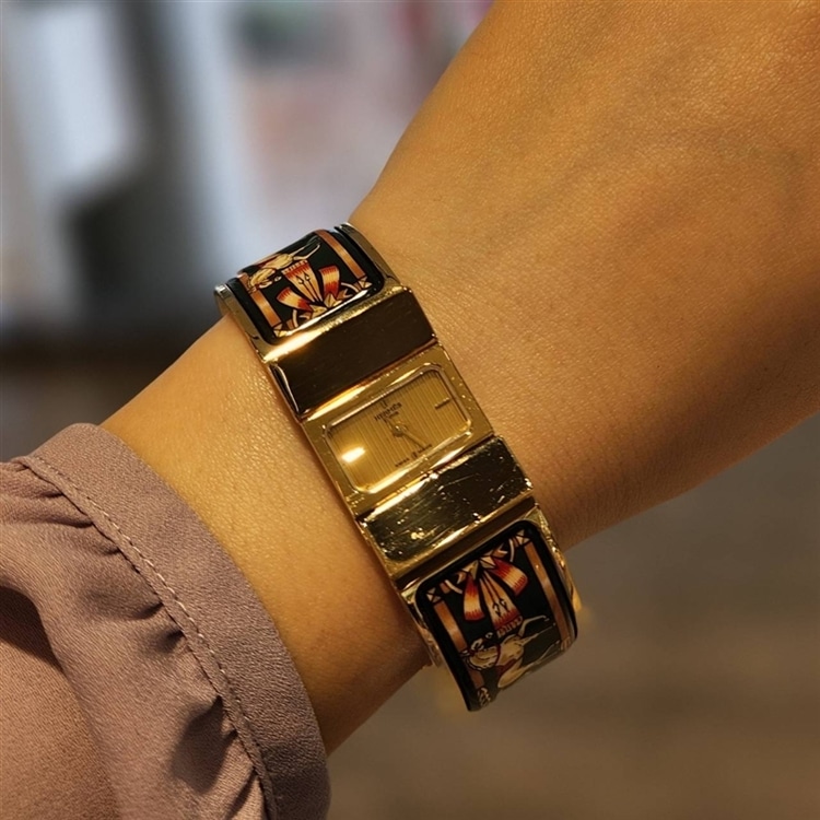 本日はエルメスからエマイユの美しい装飾が特徴的なバングルウォッチ「ロケ」をご紹介いたします!