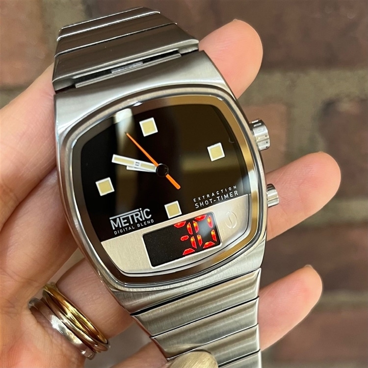 ぱっと見はシンプルな腕時計なのに、実はコーヒーのための機能が備わっているというギャップも、このブランドならではです。