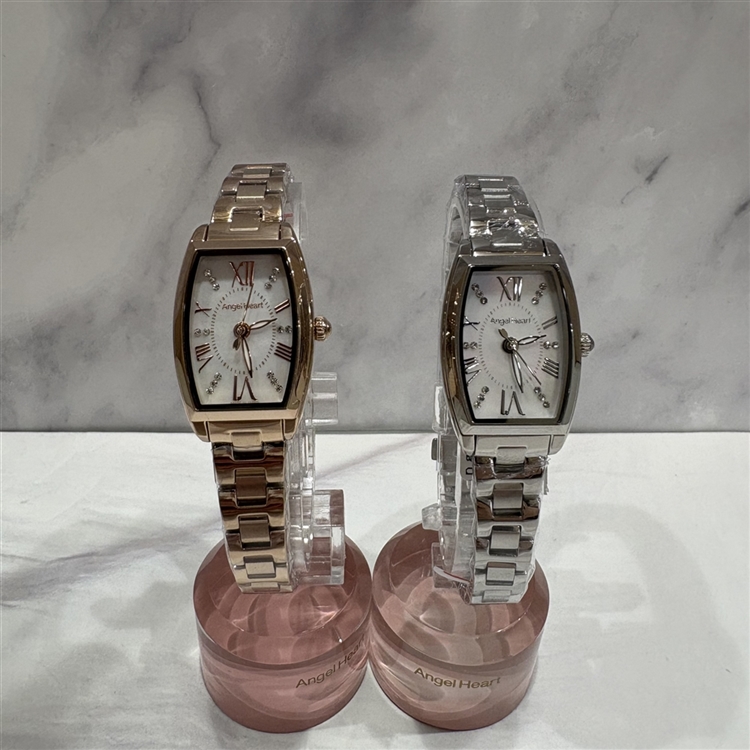 縦長のケースフォルムと小ぶりなサイズ感が手首をすっきりと見せ、女性らしいラインを美しく引き立てます。 ローマ数字とクリスタルを組み合わせた文字盤デザインが、クラシカルでありながら程よい華やかさを演出。 お仕事やフォーマルシーンにもおすすめで、きちんと感が求められる場面からデイリーまでオンオフ問わず活躍する一本です。