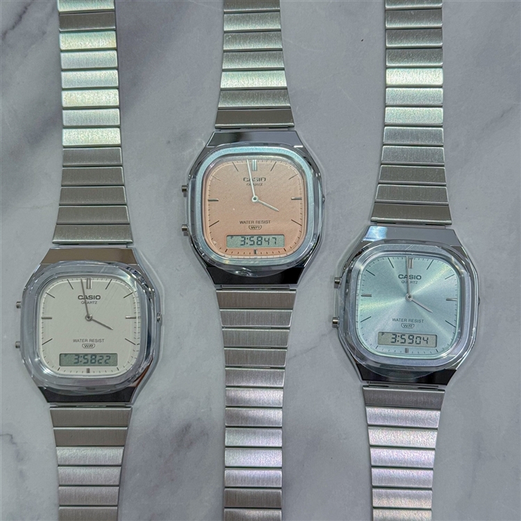 【鹿児島店】カシオからパステルカラー新作入荷! 2026.04.18 皆さま、こんにちは! 低価格で高品質!コスパの良いカシオから新作登場! 【AQ-240Eシリーズ】 全て\7,700(税込) カラー3色 レトロな雰囲気漂うアナデジモデル。 優しいカラーリングでお仕事にも使いやすいカラーが揃います。 定番のホワイトカラー 清涼感のあるアイスブルー 肌なじみのよいコーラルオレンジ 他にも新作続々入荷中です! この機会にぜひご利用くださいませ。 古い記事 記事一覧 新しい記事
