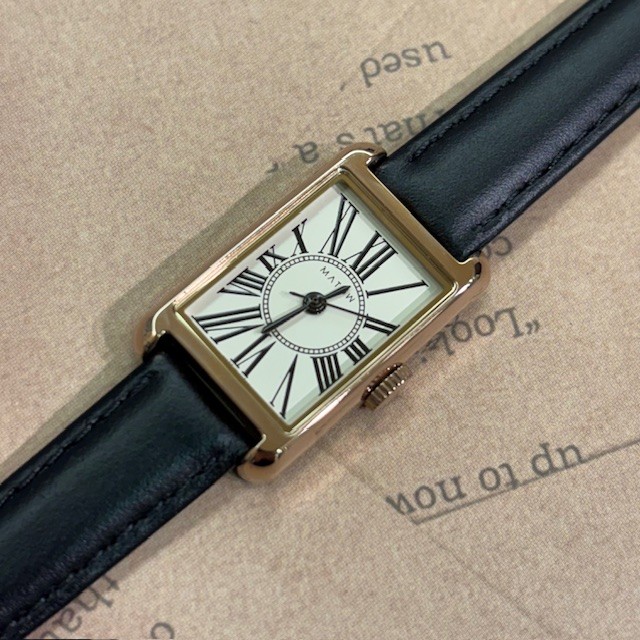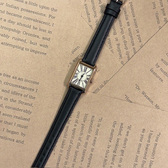 シンプルなフェイスに大きめローマ数字がアクセントになったモデル。