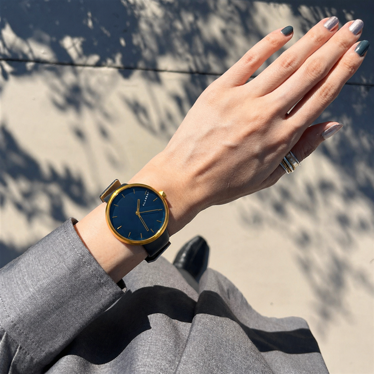 ネイビーの落ち着きに、ローズゴールドケースがほんのり華やかさをプラスしてくれるので、甘すぎず大人っぽく使える一本です。