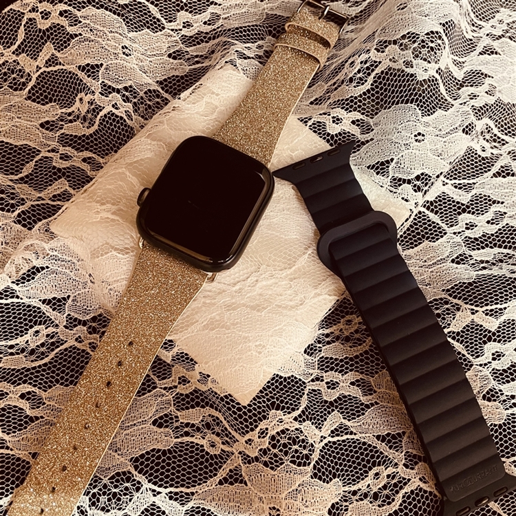 ▲こちらはラメが輝く スパークルベルト・マグネットで着脱がらくちんのマグネティックシリコンベルト