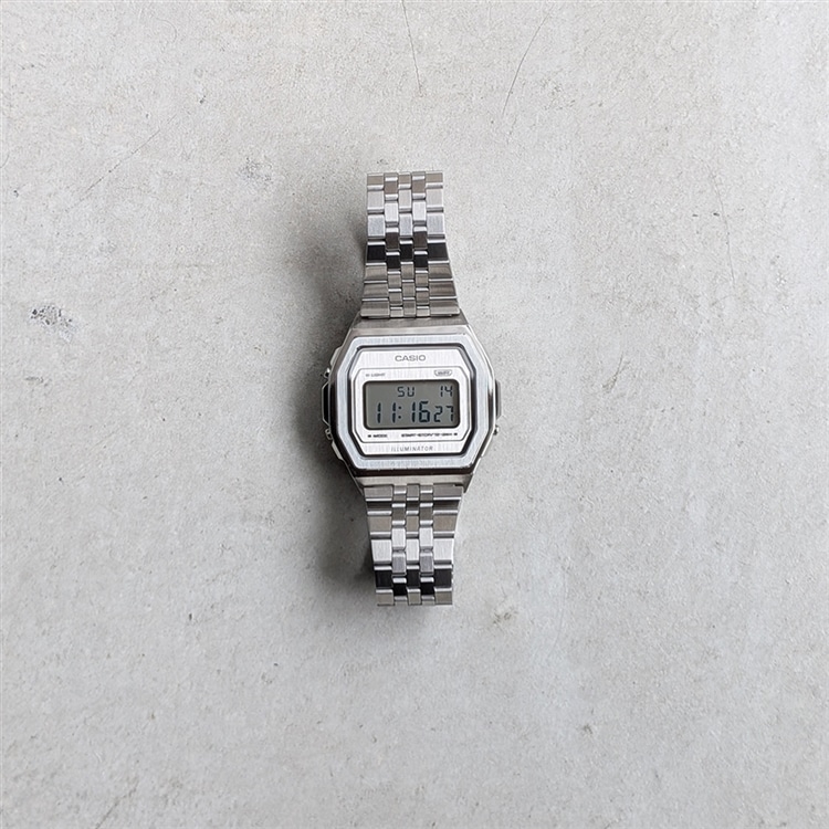 デジタルウォッチだけど、カジュアルすぎない。ヘアライン仕上げのシャープな佇まいが魅力。