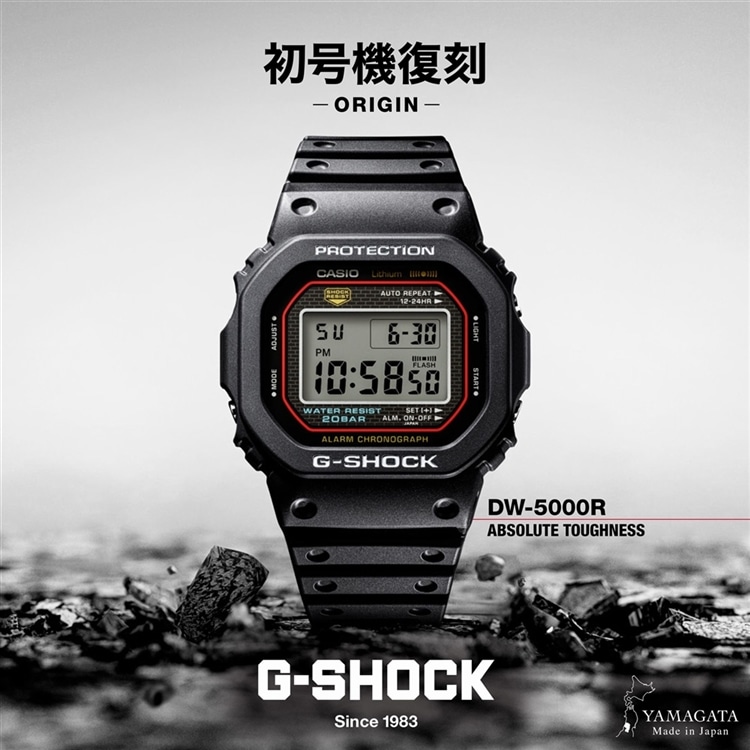 初代モデルを忠実に再現した「DW-5000R-1AJF」。総本山である『山形カシオ』で製造されていることや、40年以上受け継がれるデザインと確かな性能は“違いの分かるプロフェッショナル”な人にオススメ。また、『G-SHOCK』や時計が好きな方には必ず手に入れてほしい一本です。
